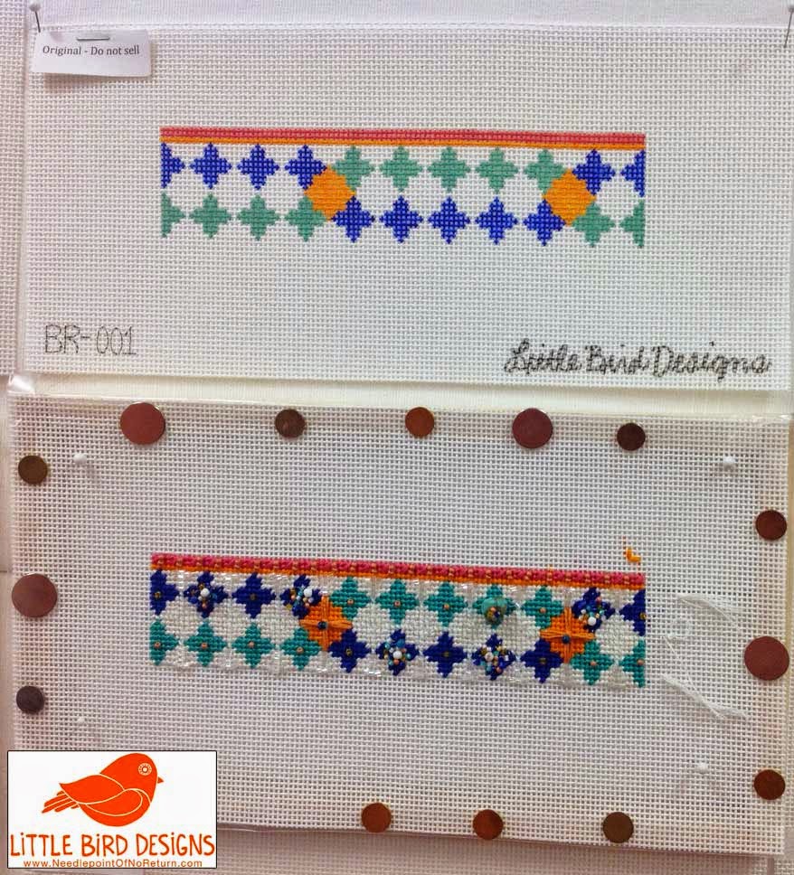 Michelle Wyse is the artist for Little Bird Designs, LLC. She has already attended and successfully sold her designs at Destination Dallas (a Cash & Carry Needlepoint Market). The word is spreading about her fresh and innovative needlepoint designs.